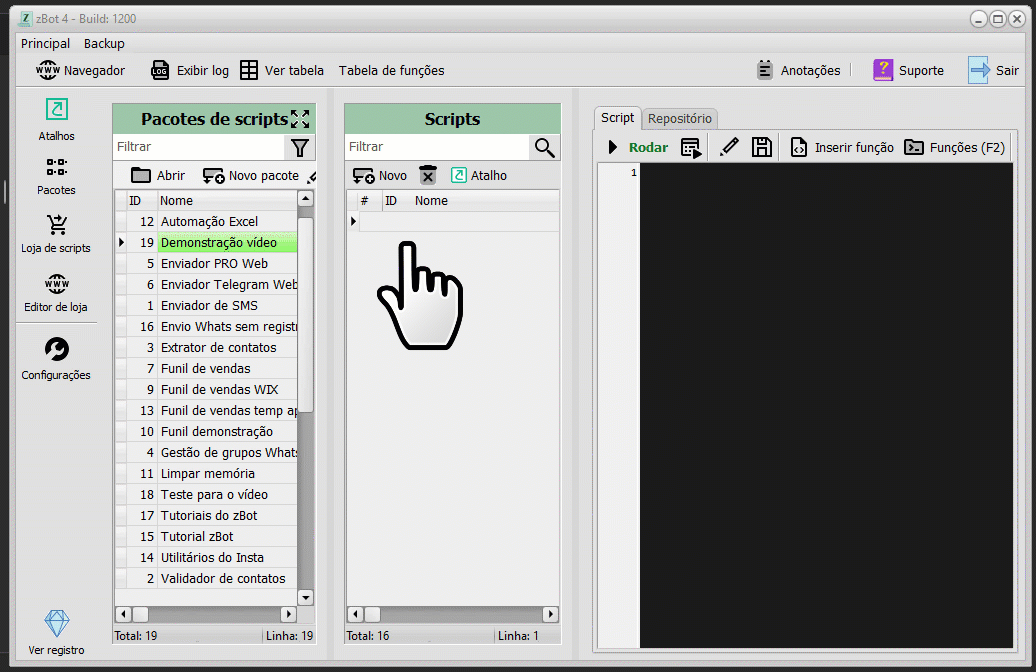 O zBot disponibiliza gratuitamente vários scripts de exemplo, que podem ser usados, editados ou adaptados para suas necessidades. Além disso, você pode criar seus próprios scripts para automatizar qualquer tarefa digital, de acordo com suas necessidades.