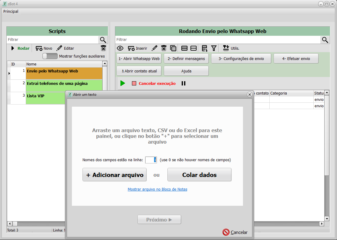 O zBot consegue importar dados do Excel? Do Google Contacts? Consegue obter meus contatos e grupos de plataformas de mensagem? Filtra dados? Dispara mensagens no automático? Valida telefones? Envia SMS? Localiza e extrai da web emails e telefones segmentados de meu público-alvo? Dá para eu automatizar postagens, curtidas, comentários ou outras interações em sites diversos? Posso criar scripts para abrir, clicar, interagir, copiar, digitar e processar dados em qualquer site ou sistema que está no meu computador?