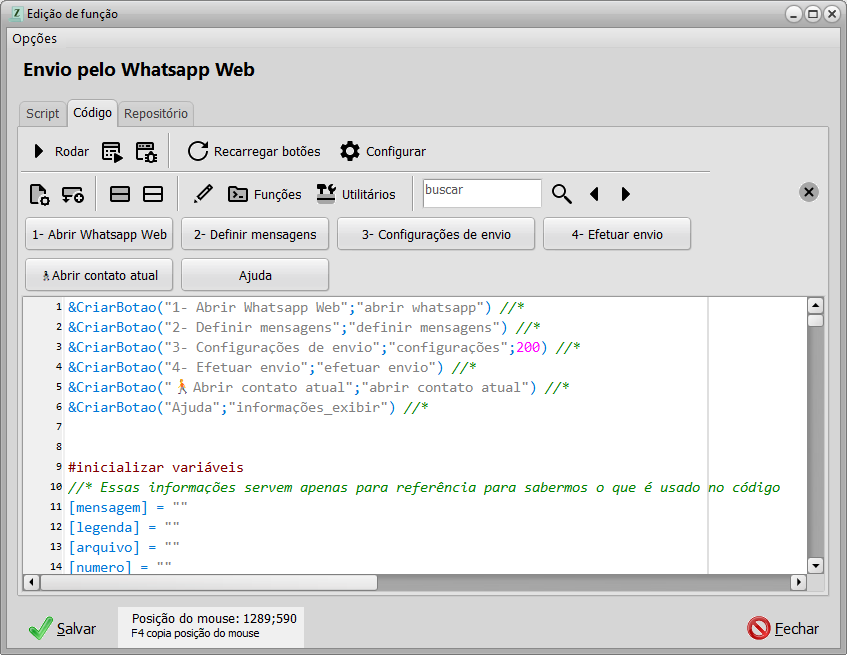 1- Os scripts podem ser adquiridos e baixados na loja de scripts do zBot, cujo endereço é fornecido no site do produto e pelo próprio sistema zBot. Scripts gratuitos são cortesia e não fazem parte da licença do produto. Não há qualquer garantia de que melhorias ou correções desses scripts serão lançadas; Não prestamos, por obrigação, suporte para uso dos scripts gratuitos fornecidos;